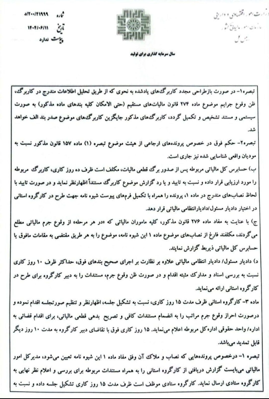 این حکم درباره گزارشهای دریافتی از مراجع قضایی، انتظامی و سایر نهادهای نظارتی نیز اعمال میشود. لازم است تمام مراحل دادرسی مالیاتی این پروندهها خارج از نوبت انجام شود.