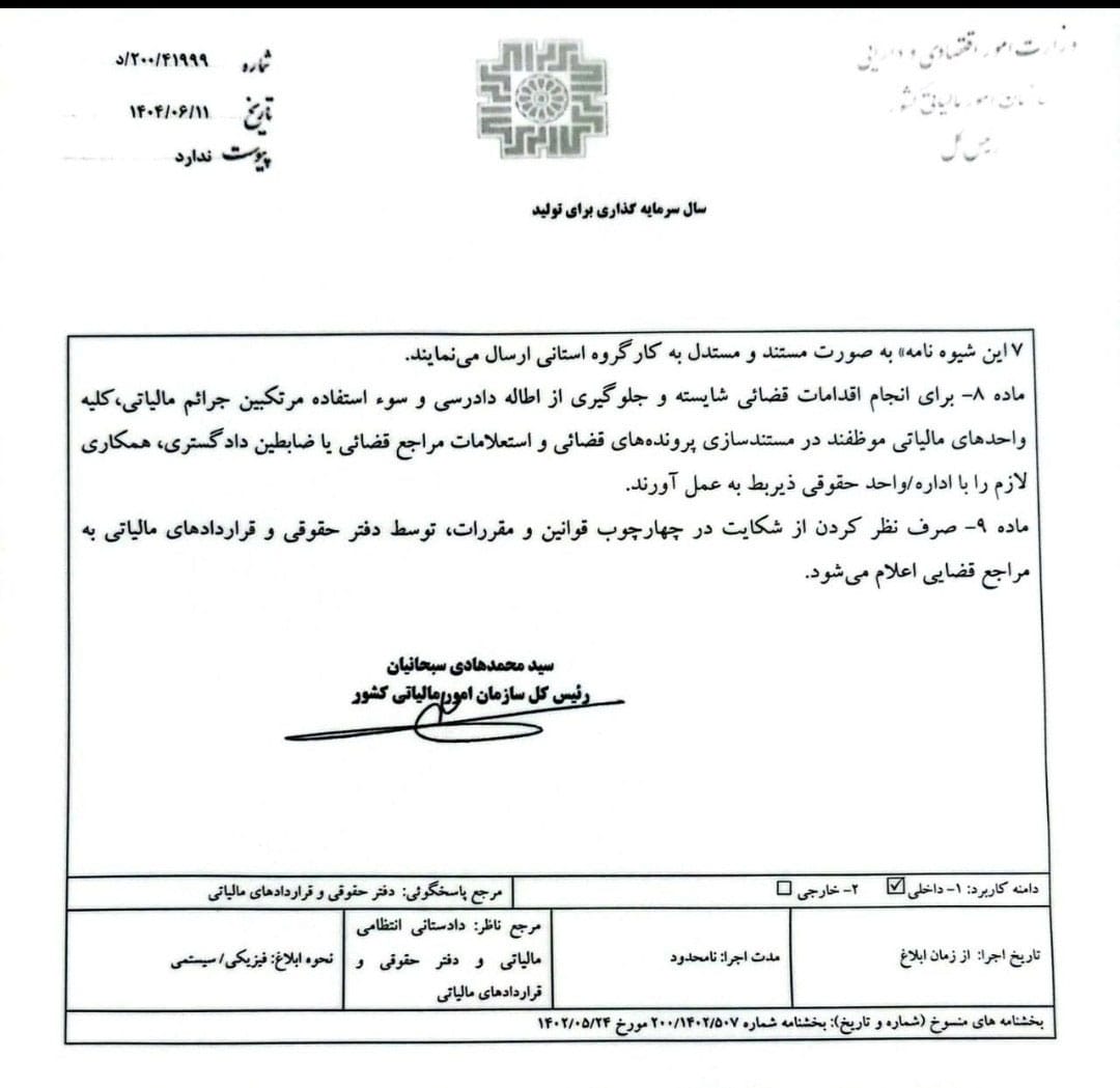 کاربرگها به صورت سیستمی برای حسابرس کل مالیاتی و دادیار مسئول یا انتظامی ارسال میشود.