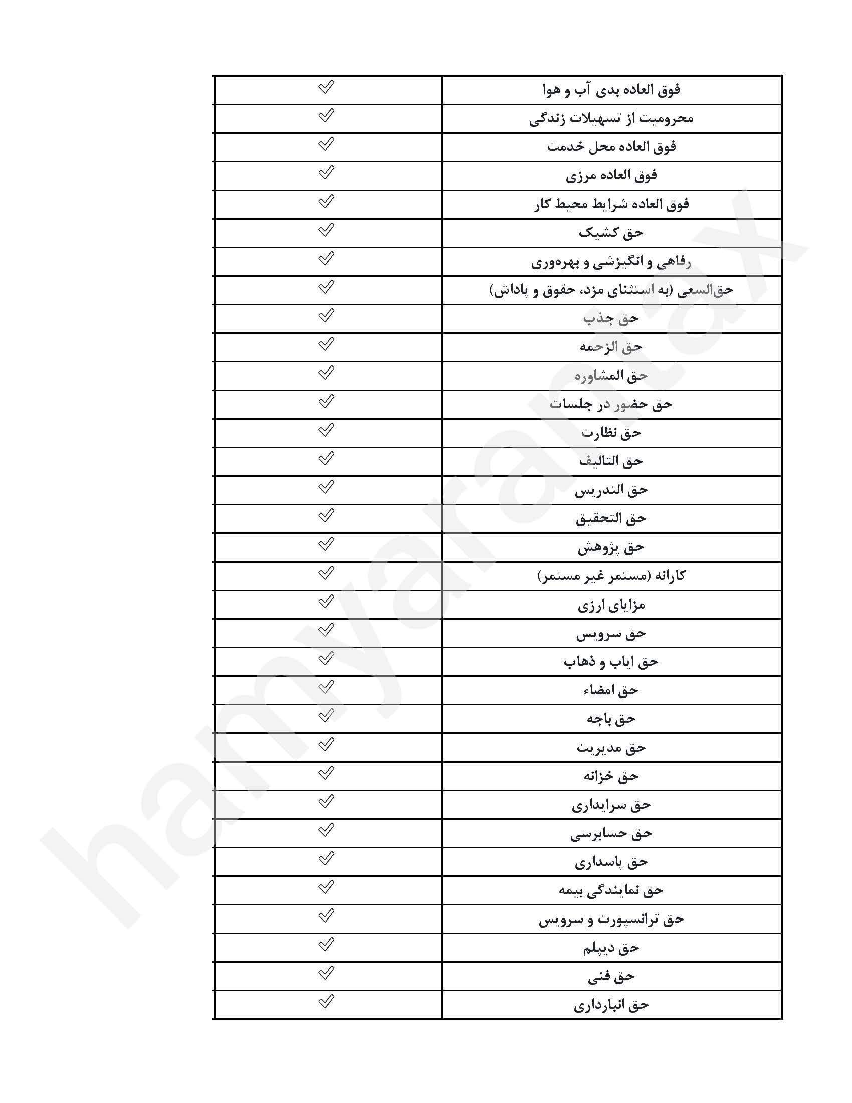 - فوق العاده شغلی: مانند حق جذب، سرپرستی و مسئولیت، مشمول.