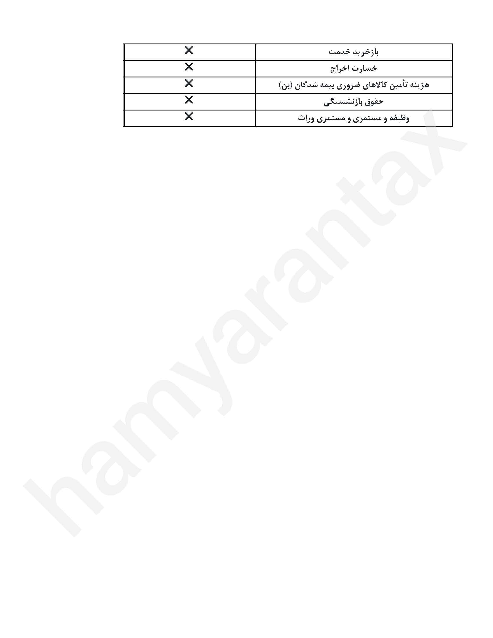 - نهضت سوادآموزی: پاداش های آموزشی، غیر مشمول به دلیل ماهیت حمایتی.